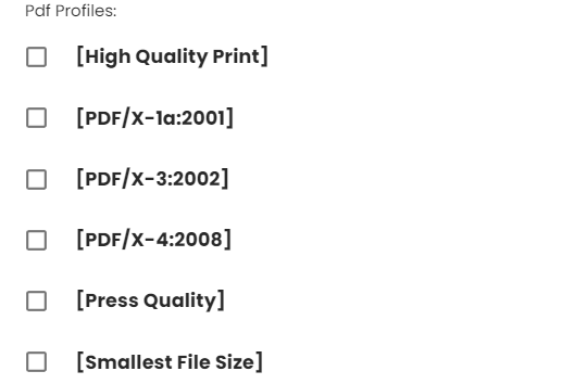 The form generated by this method is to the panel above, but not contains InDesign pdf profiles to select.