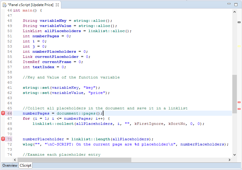 If the specialized CScript editor is enabled (see section Preferences), the following features are available in the editor:
