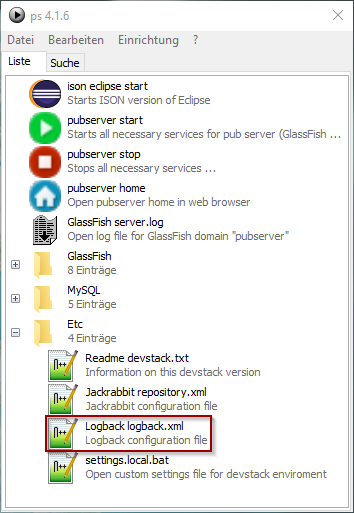 The publishing server uses the logback framework for logging. logback uses a configuration file to control the log level. There is an entry for the root log level. For each package or class a separate log level setting is possible.