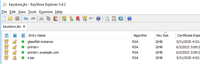 Now, copy the new certificate – e.g. “printsrv.example.com“ - and paste it into the keystore.p12 - via context menu copy and paste.
