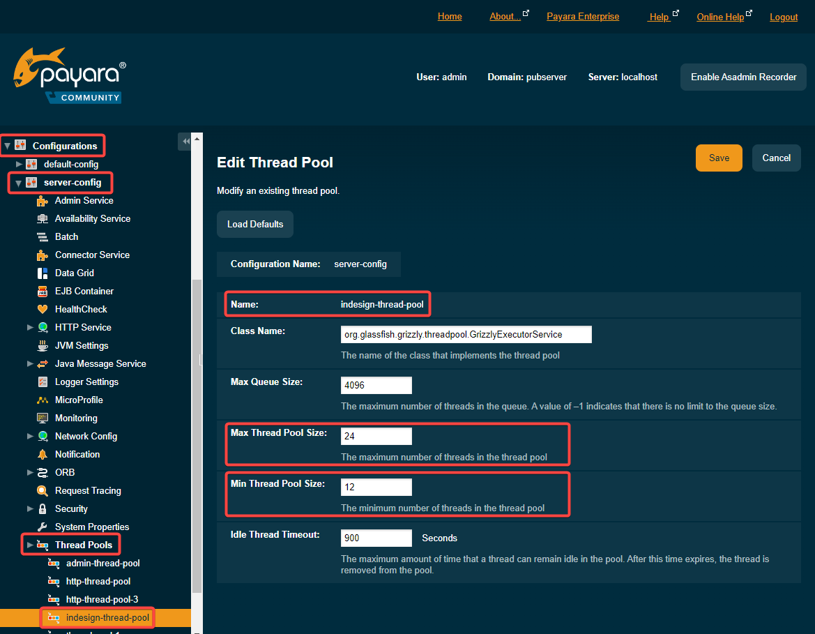 Set the Thread Pool to the previously created thread pool named “indesign-thread-pool”.