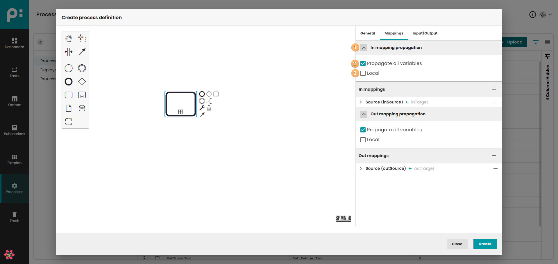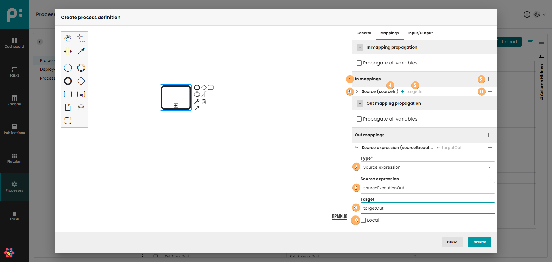 - In order to only map variables that are declared in the inputOutput mapping, the attribute local can be used. Setting local means that all local variables of the execution executing the call activity are mapped into the called process instance.